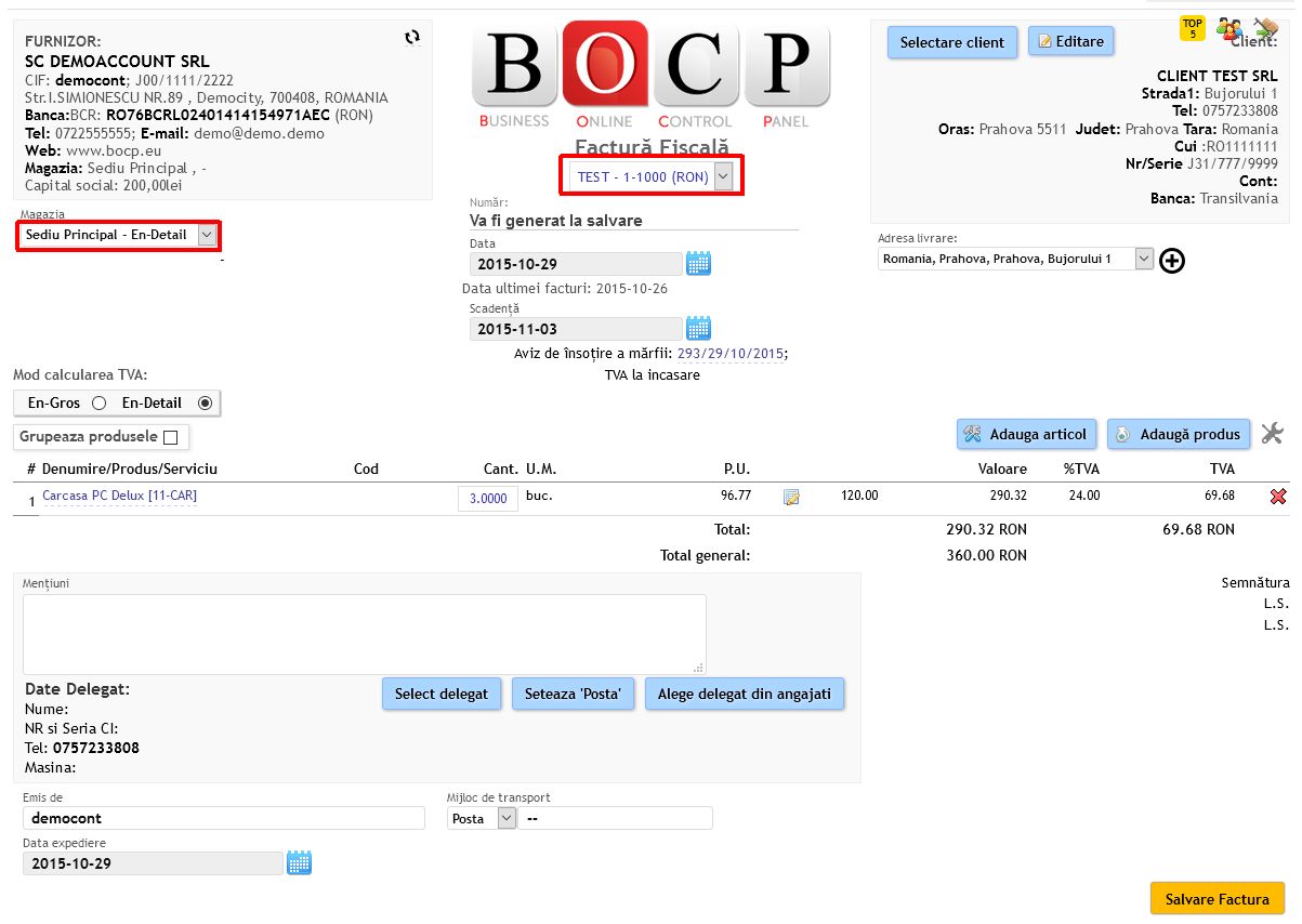Este foarte important ca la emiterea facturilor să alegem punctul de lucru și seria corectă pentru factură